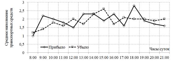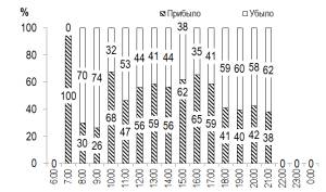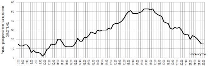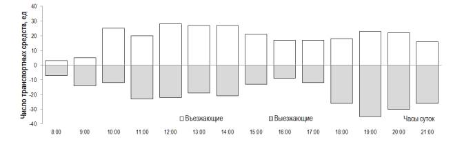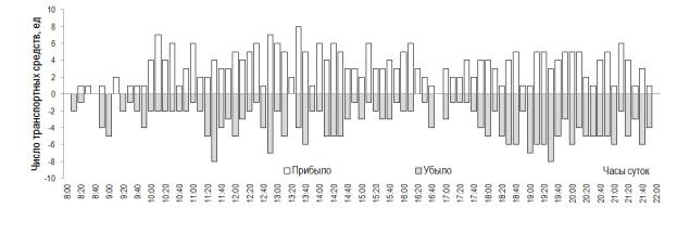 въезжающим и выезжающим транспортом внутри часового периода остается примерно