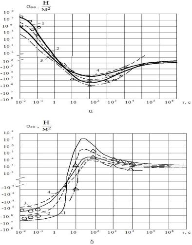 перемещений, температур, нормальных и касательных температурных напряжений при