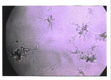 зачаточные узелки и нити колоний, которые были хорошо видны при
