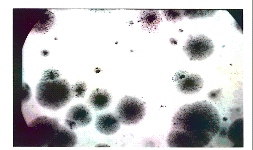 Размеры этих колоний колебались в пределах 0,5-2 мм и они состояли из темных и