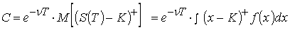 Стоимость опциона представляется в виде разности двух