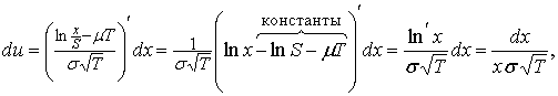 модели логарифмически нормального блуждания цены акции, которая оказалась
