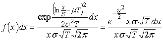 логарифмически нормального блуждания цены акции? Докажите, что плотность распределения