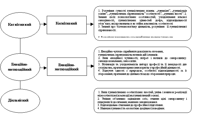 гуманістичного світогляду; наявність системи гуманістичних цінностей;