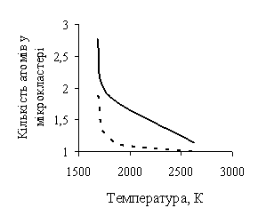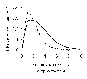 даними рисунка 1,а ймовірність мікрокластерів, більших за 5 атомів, менша за 6%,