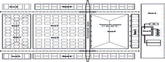 D-предварительное выдерживание изделий (термоосная камера); зона Е-размещение