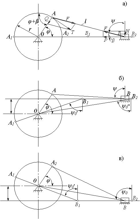Кривошипные механизмы бывают [4] центральные и нецентральные (рис.1).