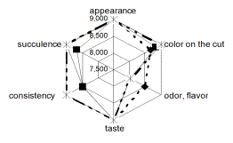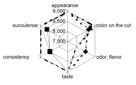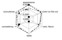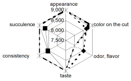 1. Profilograms sensory evaluation minced meat products: a - freshly cooked
