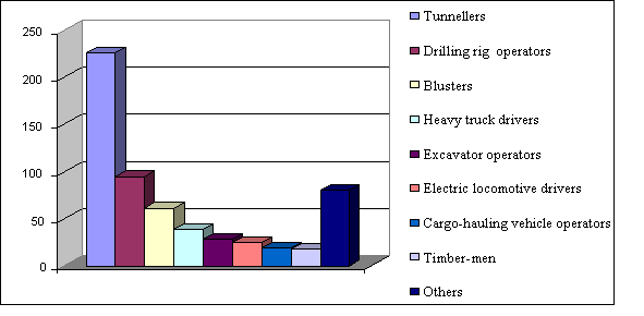 degree (3.3 - 3.4). Working conditions of blusters, timber-men, breakage face workers, drivers and operators of various