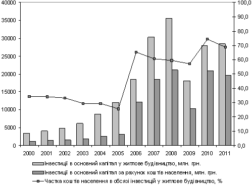 Україні частка коштів населення в обсязі інвестицій у житлове будівництво