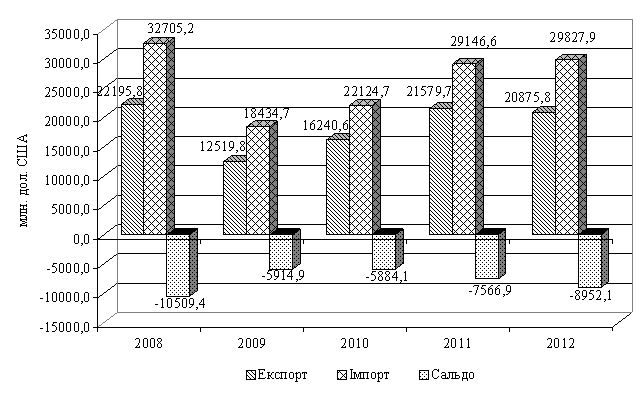 склав 12519,8 млн. дол. США. Імпорт відповідно зменшився з 32705,2 млн. дол.