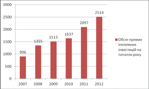 обсягів прямих іноземних інвестицій по роках, можна прослідити на рисунку 1.