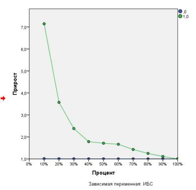 равна 70%. Таким образом, на нашей диаграмме показана, что при ИБС=1 (то есть