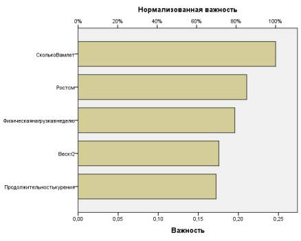 аналогии с таблицей 3 построена диаграмма нормализованной важности: