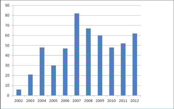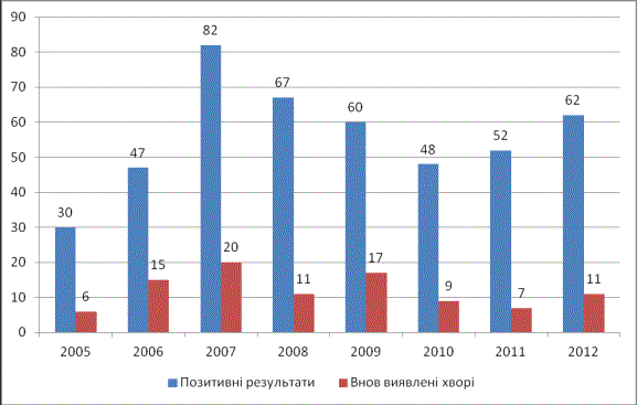 період з 2002-2012 роки по виявленню позитивних результатів дослідження