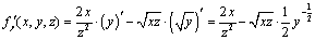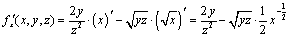 переменные y и z при дифференцировании постоянными).