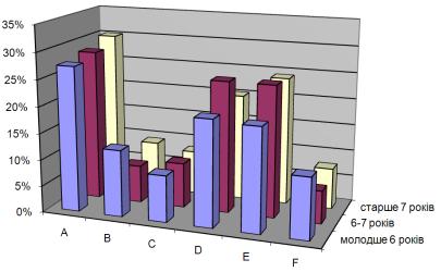 віковій групі найбільшу кількість балів отримав малюнок А, що є найбільш схожим