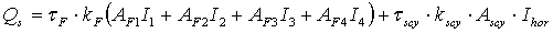 построим оранжерею вдоль южного фасада здания высотой 3м. Теплопоступления