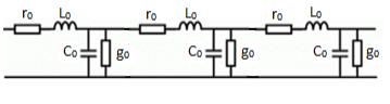 емкости C0, индуктивности L0, активного сопротивления r0 и межпроводной проводимости g0, как это показано на