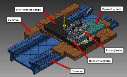 скінченно-елементна модель верстата, при вирішенні контактної крайової задачі,