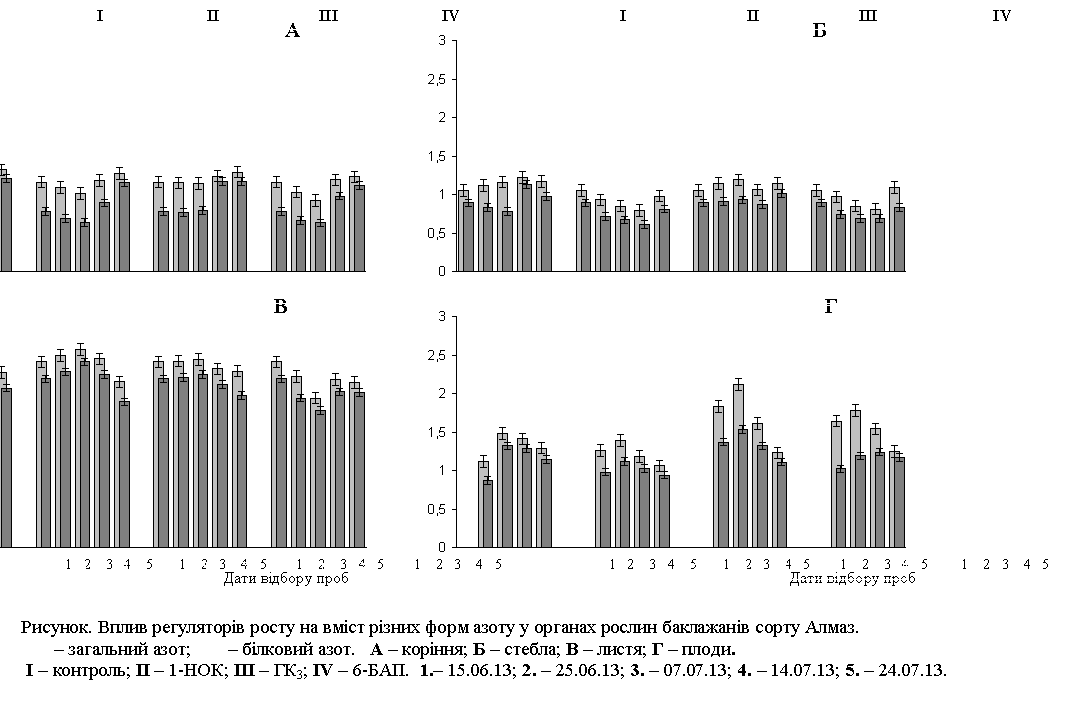 росту на динаміку накопичення різних форм азоту в рослин баклажанів