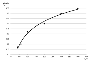 Рисунок 1- Изменение показателя «кажущейся» вязкости (lg η) от степени наполнения (ω) эластомерной композиции при скорости сдвига lg γ = 2 (с-1)