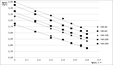 Рисунок 2 – Изменение показателя «кажущейся» вязкости lg(η), Па*с, от