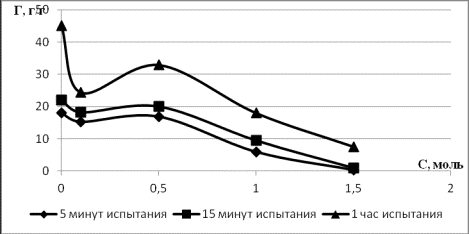 косвенно характеризуется резким уменьшением относительной массы геля с 45г/г до