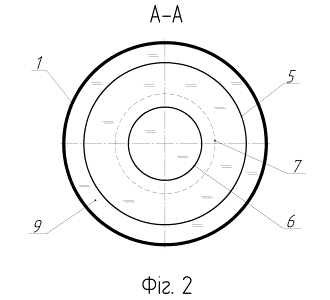 8, або іншим відомим способом, і утворює з внутрішньою поверхнею корпусу 1