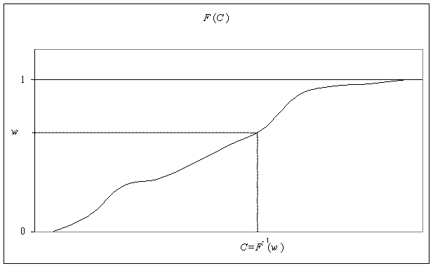 allows to simulate the behavior of a random variable x by generating a random number value w.