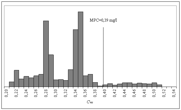 (mean value, excluding the maximum and minimum values) , equal to C = 0.720 mg/dm 3. Adoption