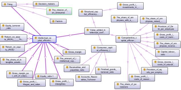the ontological model of enterprise’ intellectual safety is presented in Fig.