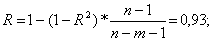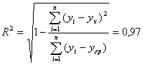 регрессияның коэффиценті R = 0,93, детерминация коэффиценті R2=0,97,
