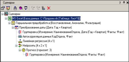 отображается сценарием. Сценарии показаны в виде дерева с пояснительным