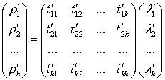 В матричной форме тензор преобразования можно записать, как (k - число контуров):