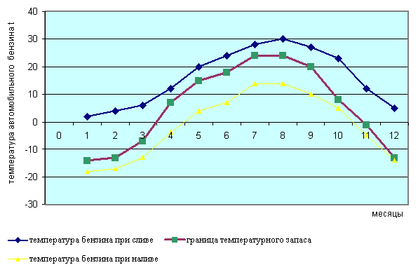 Минимальные температуры бензина при наливе и при сливе по месяцам года