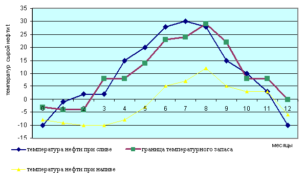 Минимальные температуры сырой нефти при наливе и при сливе по месяцам