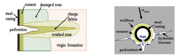 the well is cased a steel casing cemented to the rock. The pressurized fluid
