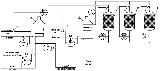 трубчастої печі 5 регулятором 16, який впливає на регулюючий клапан 17. Це