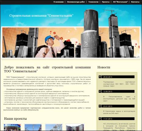 нижней части страницы находится блок, рассказывающий о проектах компании. Навигационное