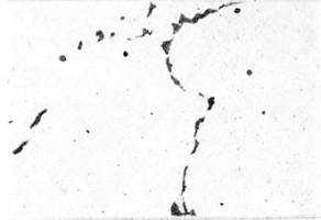 Розподіл сульфідів і тріщин по границях первинних зерен металу шва з 0,06% S: а