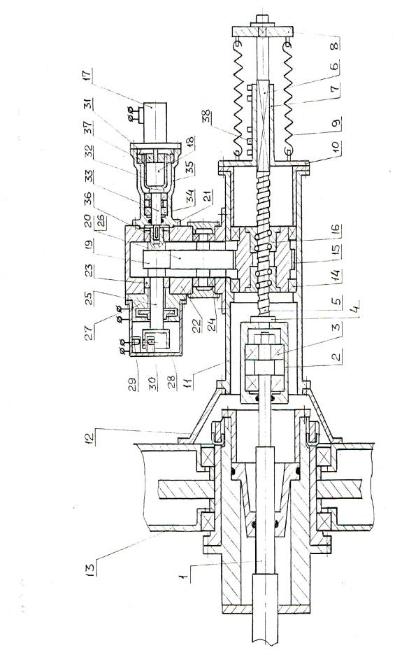 линейными перемещениями штока 4 и числом оборотов ротора двигателя 17 имеется