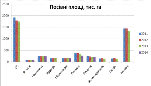 Європі значно вище, ніж в Україні. Так з 1 га в країнах ЄС в 2013 році загалом