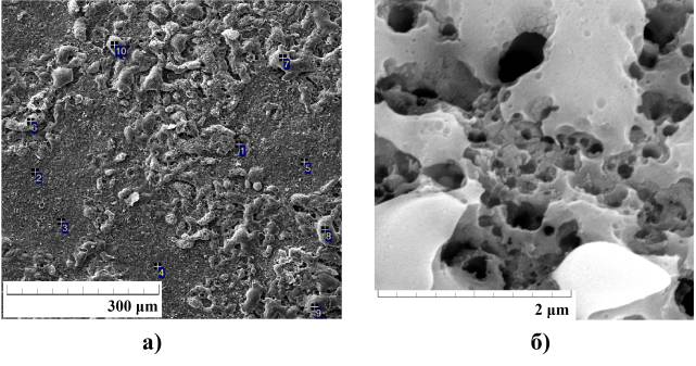 Покрытие, сформированное ЭПН и МДО на титановом сплаве ВТ16 состоит из оксидов титана (анатаза, рутила, оксида титана) и алюминия (корунда), имеет развитую морфологию, в покрытии присутствуют открытые поры размером от 90 до 350 нм.