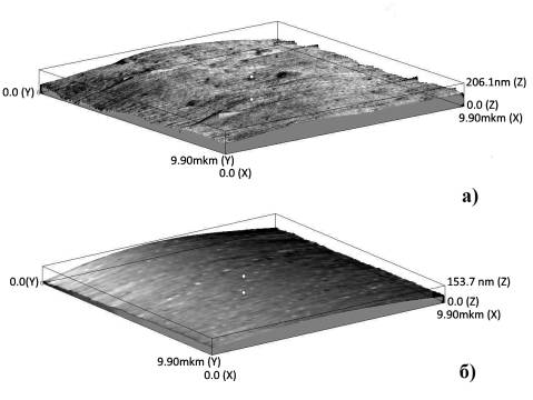 поверхности углеситалла в исходном состоянии (а) и после формирования пленки