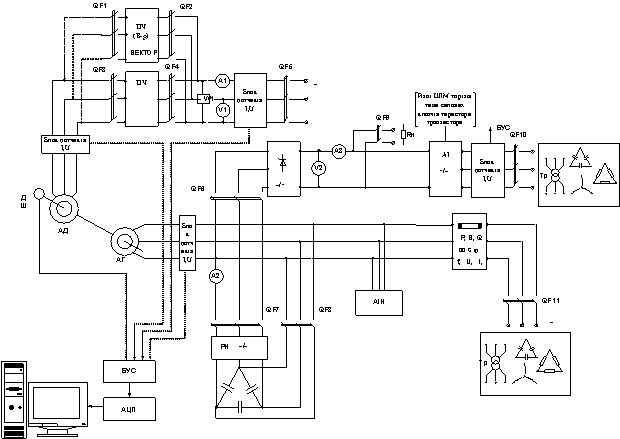 відображають електричні параметри ключових силових ланцюгів. Таким чином на даному лабораторному стенді є можливість проводити