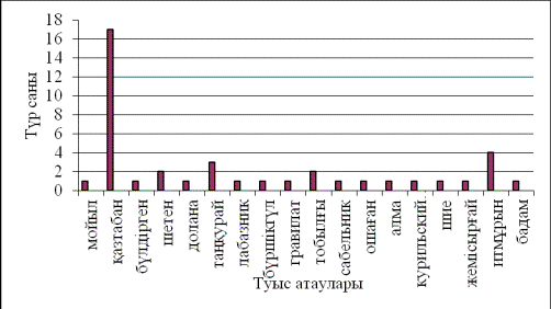 (барлық флораның 15,15%), 4 түрден (6,06%) кіретін шие (Cerásus),