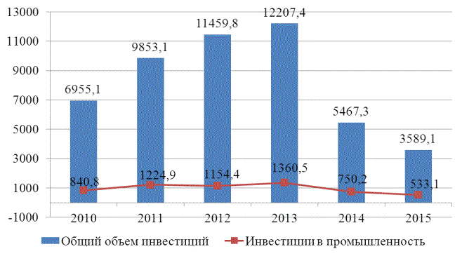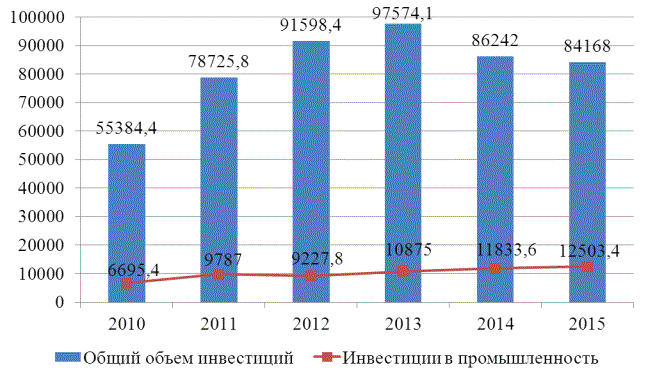 виду промышленной деятельности отмечен рост инвестиций, в 2010 г. вложено