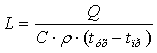 тёплого периода времени года. Необходимый воздухообмен по избыткам тепла L, м3/ч, в