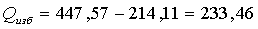 тепло Qизб, ккал/ч, в помещении, подставив полученные значения в
